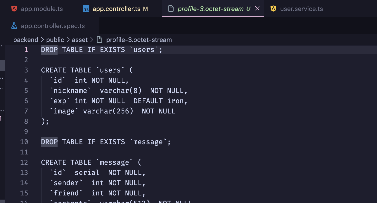 테스트로 Ghostpong 에서 지원하지 않는 sql 형식의 파일을 업로드 해 봤습니다.